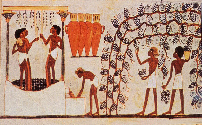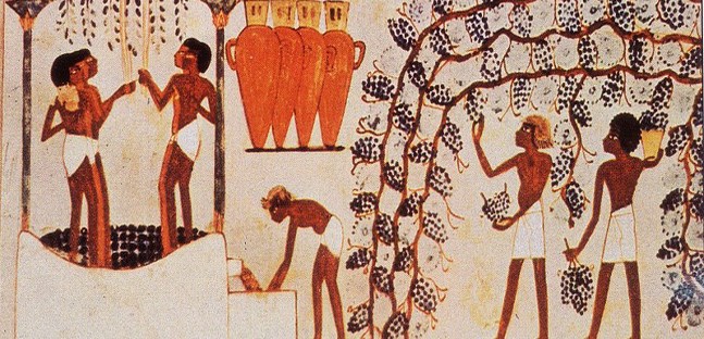 La vigne a certainement été importée depuis les régions montagneuses du nord, où l’on a découvert des jarres contenant des résidus d’acide tartrique.